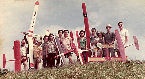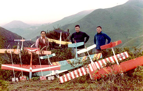 Picture of the RC family groups. In the old days no blue jeans were found! You can find 2 Cumulus, one Impala and 2 Dandy in the above picture. The most popular planes we flew were of British design either from kits or scratch-built from magazines and plans, such as the English Impala, the Graupners 2800mm Cumulus and 3000mm Cirrus. Other planes were Graupners Amigo, the UK Middle-Phase, Phase 4 and 5, scratch built Ridge Runner, Mijet, and a few self-designed models. The Cumulus 2800 proved to be the "Rolls Royce" for beginners. It would stay up balancing itself if we ran into trouble by just letting the hands off the transmitter. We had so much fun and good exercises in the hills on flying RC Gliders that we all forgot about flying RC helicopters. We would fly all day long during holidays with our families and we erected a boy-scout tent in the ridge of Kowloon Peak and brought our portable B/W TV set and food too. Other families and members had their own social gathering in the hills. Our Malaysian friend left HK for his work but our activities continued. It was around 1977, words spread in two large model shops in town about r/c gliders flying in HK. The shops wanted to sell more by introducing people to watch and contact us in the hills. There were a few fliers joining us and we helped a few beginners to start the hobby. Eventually there were about 10 active fliers during this time. Shops started to stock glider kits and more people wanted to try this new hobby. Two or three full size commercial aircraft pilots joined us and they were quite active. One indicated to me that flying the real commercial aircrafts was easier than flying the RC Glider as these are often flown in automatic mode, and anything can happen to their models during a landing. Our group was very active and we would fly whenever weather permitted us to do so. We wanted to recruit more people to fly in the hills and we made enquiries to the "Powered RC clubs", model shops, and offered to help beginners. We were interviewed and filmed by three local TVs as a promotion to a healthy sport by ATV, TVB and the "Commercial TV" ( which was closed later.)